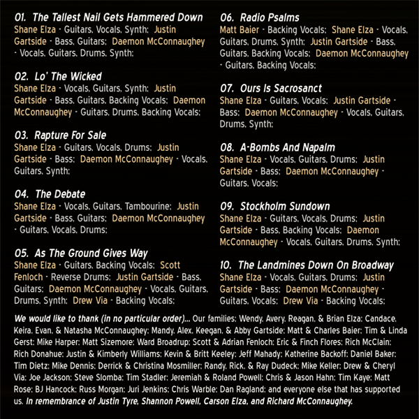 Recorded, Produced, and Mixed: Shane Elza
